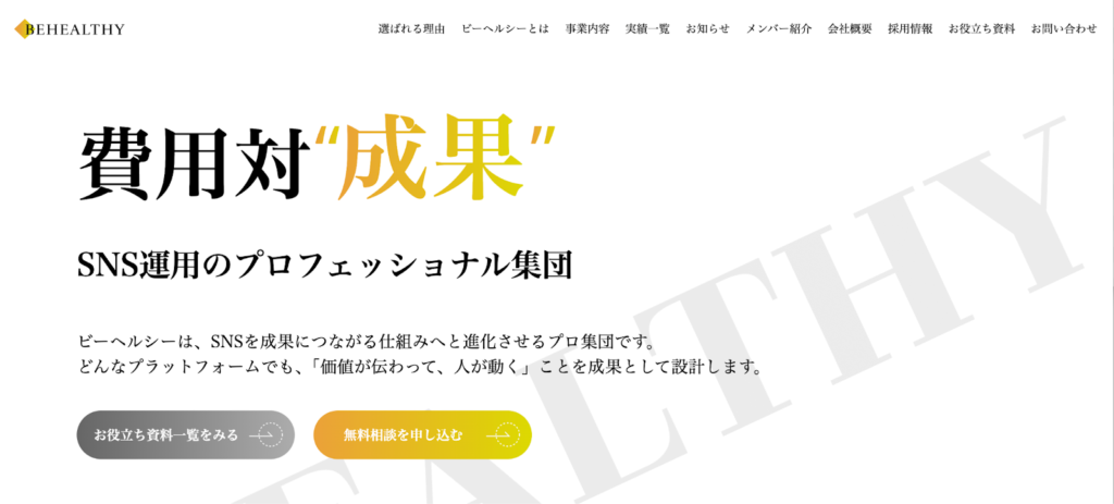 「日本一泥臭いSNSマーケティング」を掲げる株式会社ビーヘルシーは、売上や採用といった実利成果に徹底的にこだわるコンサル型SNS運用会社です。
