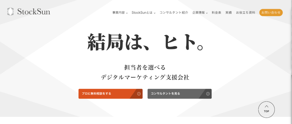 StockSun株式会社は、担当コンサルタントを選択できるという独自の仕組みを持つデジタルマーケティング支援会社です。