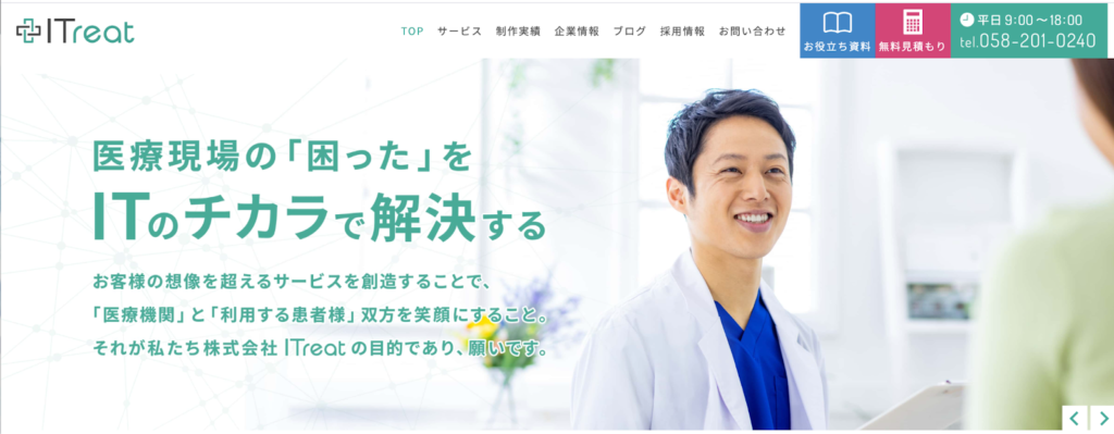 | 株式会社ITreat | ホームページ制作・Instagram運用・動画制作・システム開発 | 医療専門の制作会社・ガイドライン遵守+引継ぎサポートに対応 | 初期費用:5万円 Instagram運用:月額5〜14万円 |