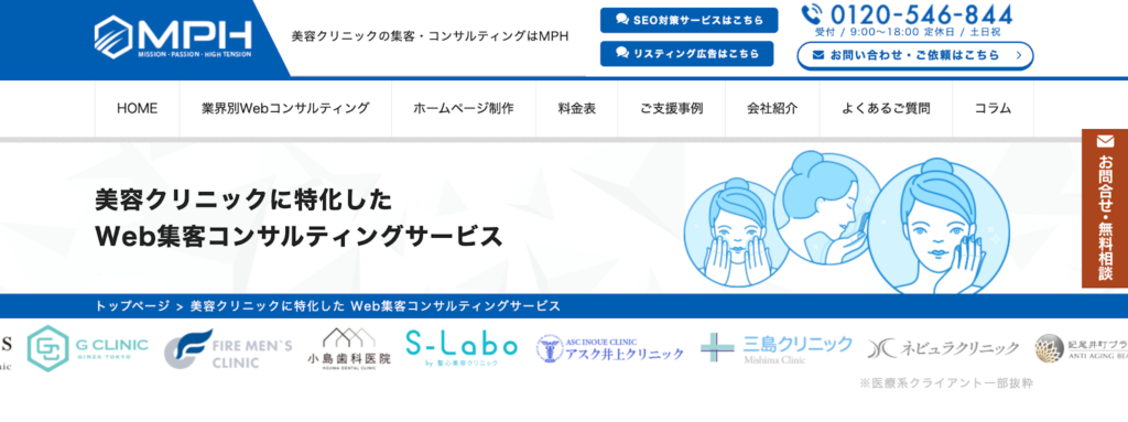 | MPH(プラスファクトリー) | Web集客コンサル・SEO・SNS・LINE | 2年で1院→5院に拡大した支援実績・LTV最大化・生成AI対策にも対応 | 月額25万円〜 |