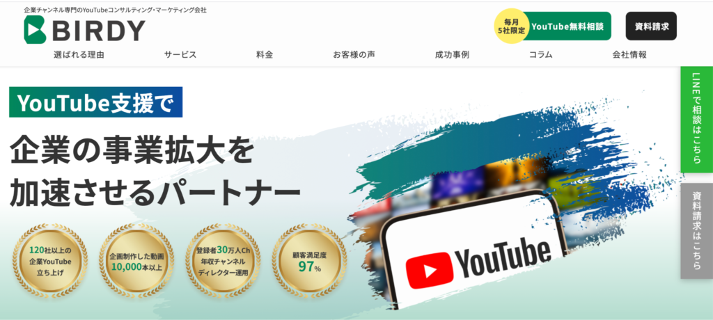 株式会社BIRDY(バーディ)は、法人専門のYouTubeコンサルティング・運用代行会社です。