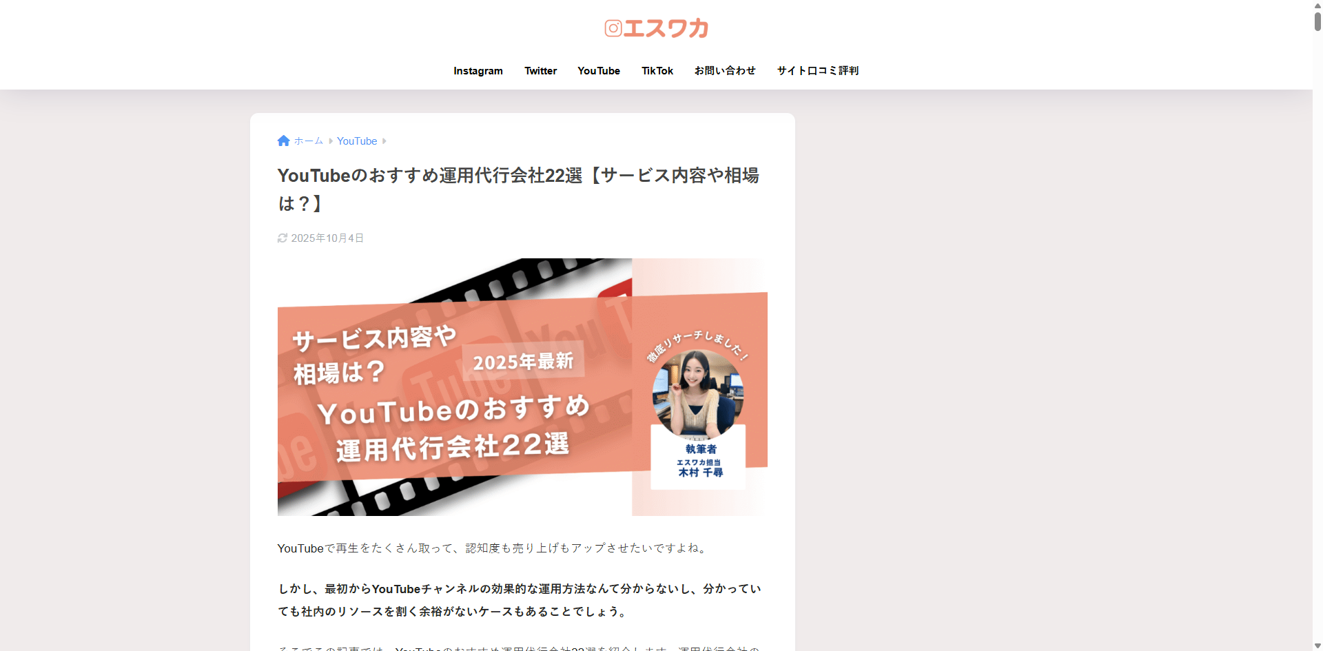 この度、エスワカ運営部ブログ記事「YouTubeのおすすめ運用代行会社22選【サービス内容や相場は?】」に弊社が掲載されました。