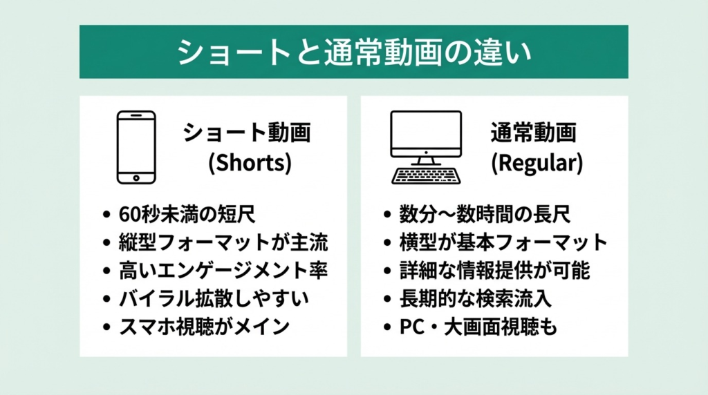 YouTubeには、ショート動画と通常動画の2種類があります。