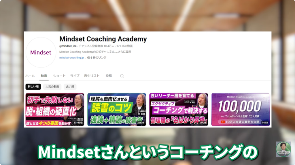 高嶋さんのYouTube広告の代表的な成功事例は、コーチング系チャンネル「Mindset Coaching Academy」。