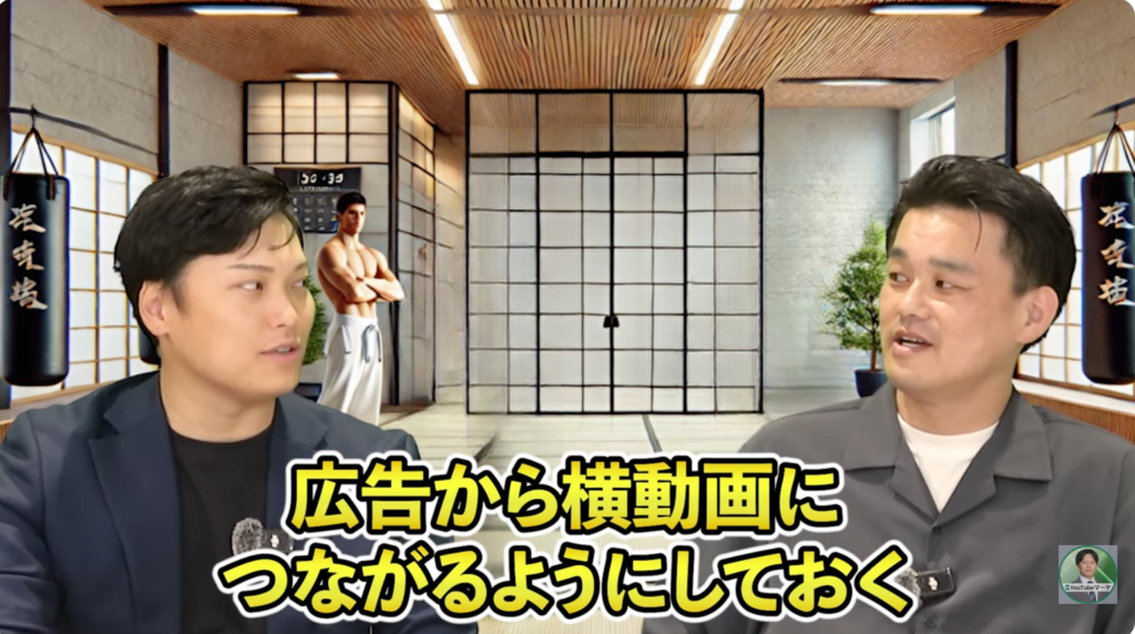 ショート広告がヒーロー、短〜中尺の横動画がハブ、そして1時間の完全解説動画がヘルプという構造ですね。