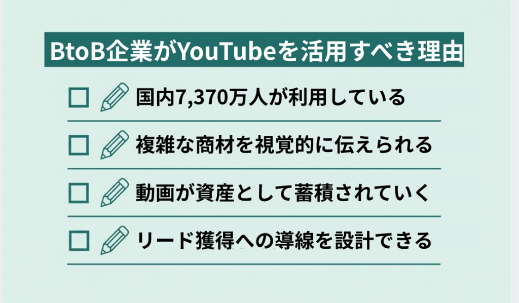 ここでは、BtoB企業がYouTubeに取り組むべき4つの理由を解説します。
