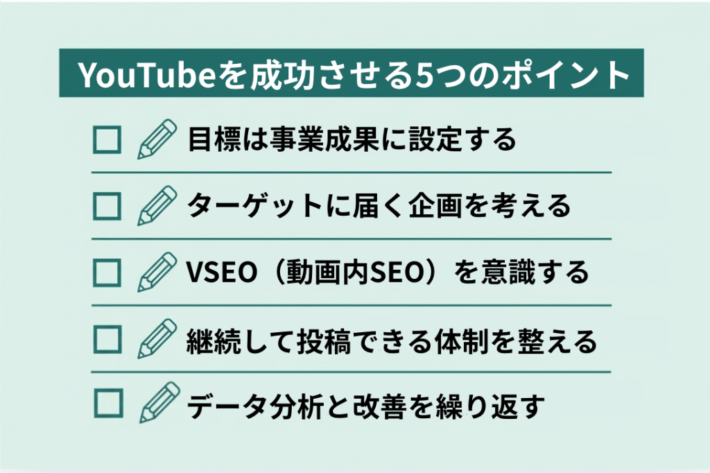 ここでは、BIRDYが150社以上を支援するなかで見えてきた、BtoB企業がYouTubeを成功させるための5つのポイントを解説します。