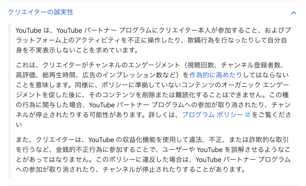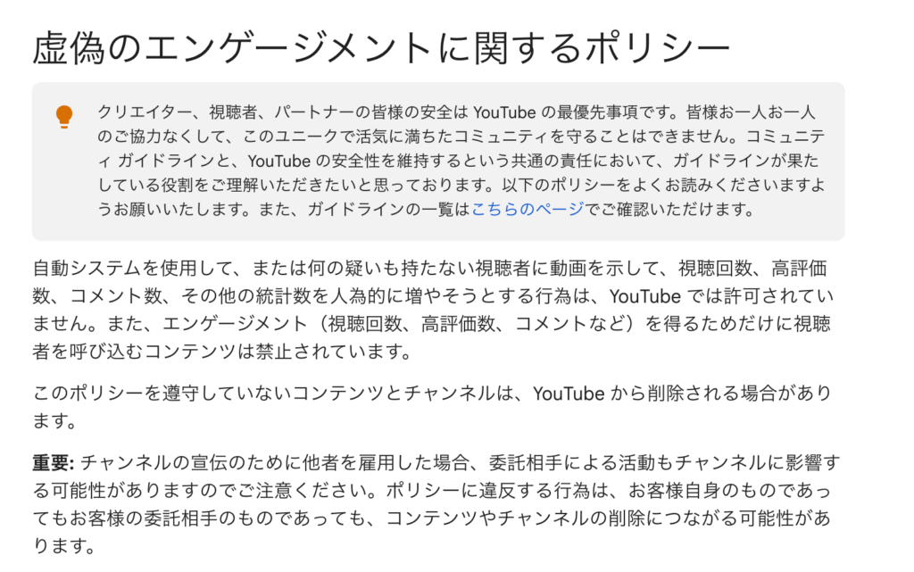 参考:虚偽のエンゲージメントに関するポリシー – YouTube ヘルプ
