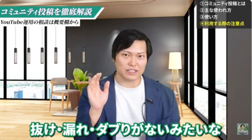 コミュニティ投稿の最大のメリットは、動画を出さなくても視聴者との接点を維持できることです。